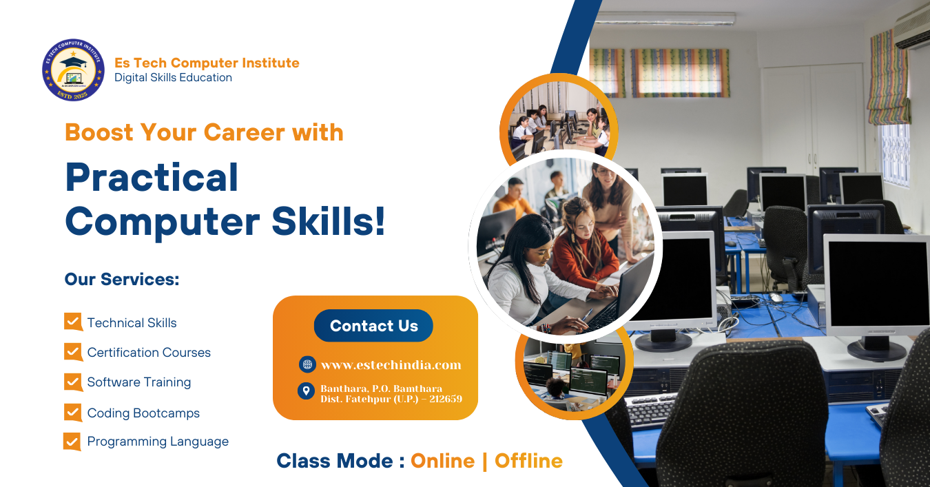 ES TECH COMPUTER INSTITUTE (ESTCI) is a premier institution dedicated to excellence in computer education and skill-based professional training. Established with a vision to bridge the gap between academic learning and industry requirements, ESTCI empowers students with modern digital skills, practical expertise, and career-oriented knowledge essential for success in today’s rapidly evolving technological environment.